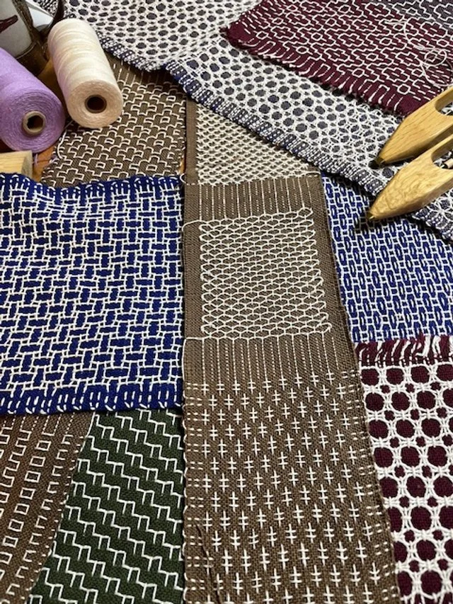 I have some new venues to teach at this year including at MAFA, the Mid-Atlantic Fiberarts Association workshops and Yadkin Valley Fiber Center. I also have some writing projects going on this year and continue to learn more about my most recent research projects of European Flamme ikats and Sashiko ori. Technically I have been adapting some of the warp ikat methods I saw in Mallorca to handweaving.